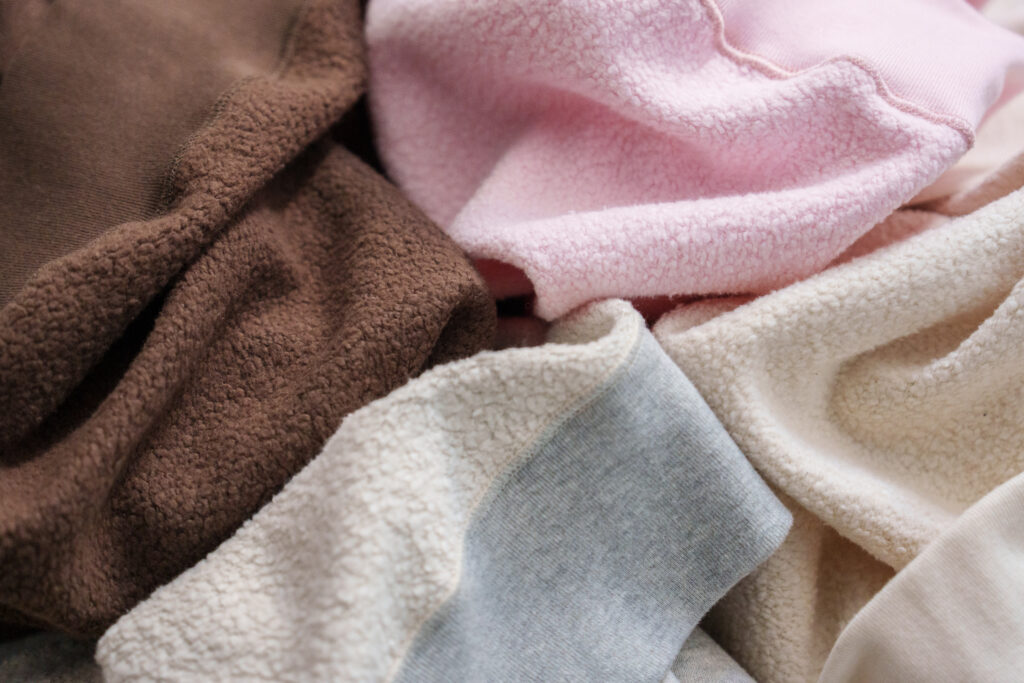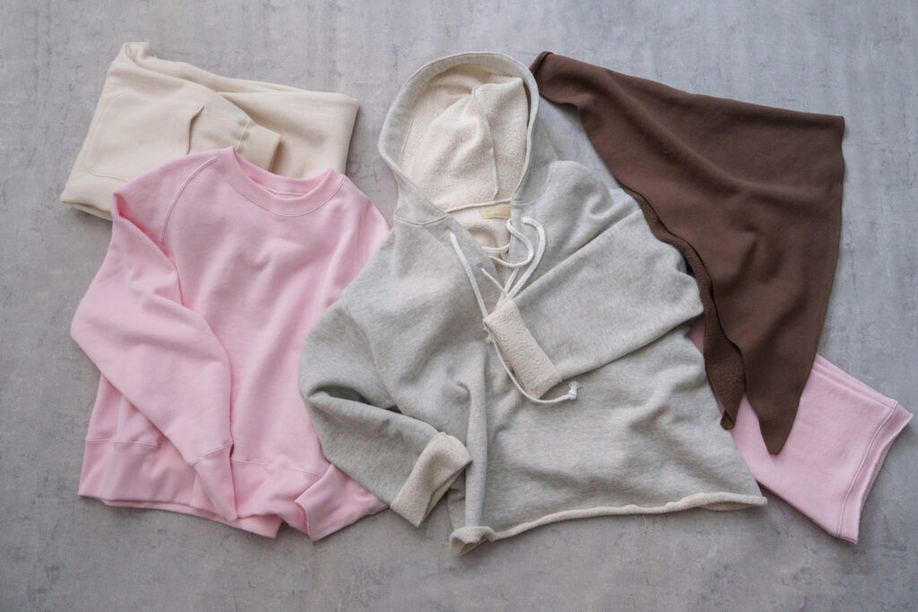 ふわふわと軽く暖かな起毛スウェット生地は、ブランドオリジナルで開発。